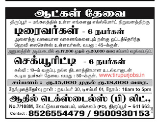 Place of work ; Tirupur Kaniyampoondi,