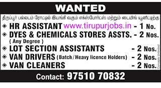 Urgently Required our export unit at vallipuram, Perunmanallur, Tirupur.