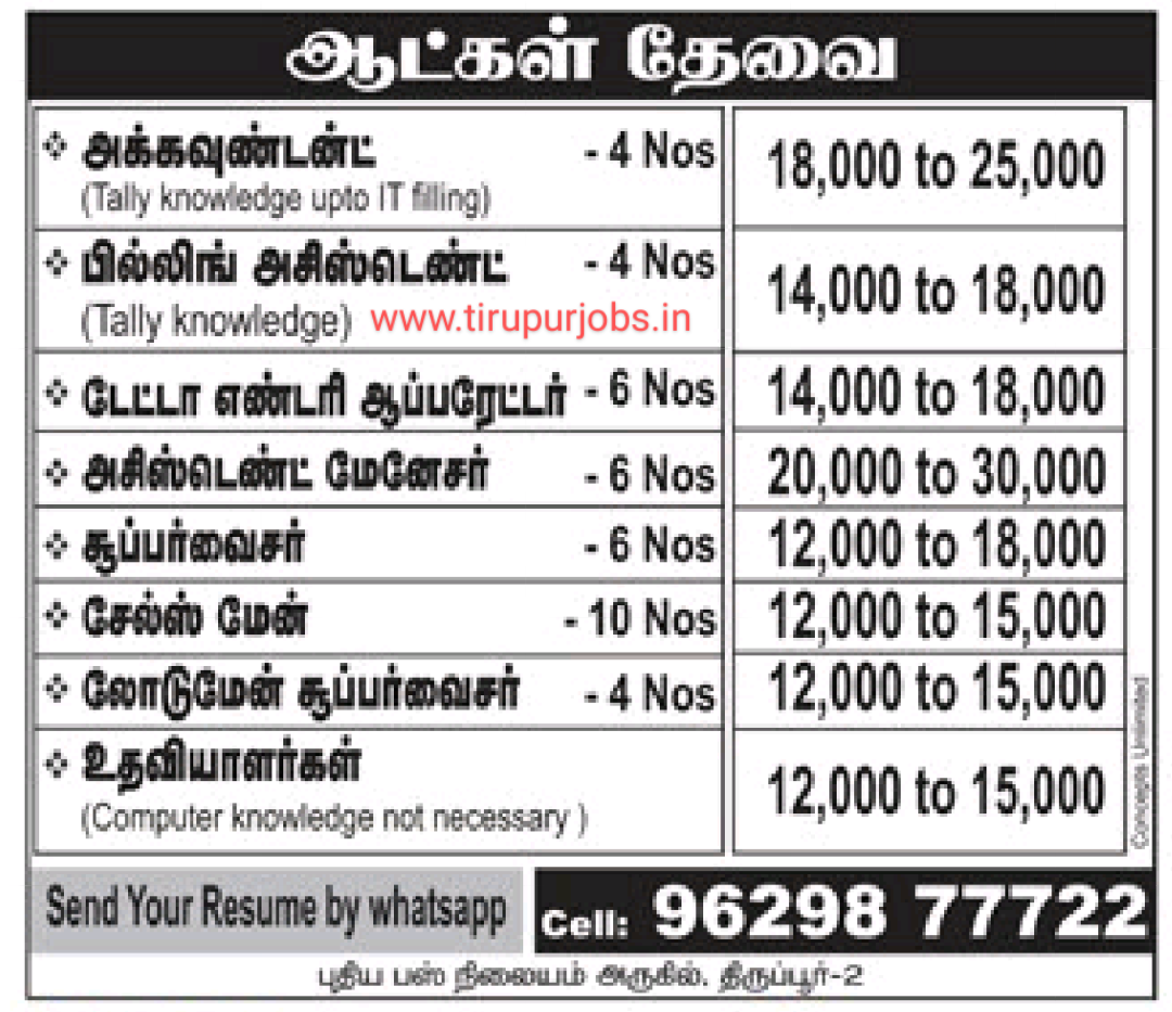 HomeTirupurToday Sunday Dinamalar 10th September vacancies in Tiruppur district Today Sunday Dinamalar 10th September vacancies in Tiruppur district ADMIN 10 September 0 Tags Tirupur Newer Older